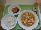 【献立】 麦ごはん 牛乳 麻婆豆腐 もやしとわかめのごま醤油 【食材産地】...