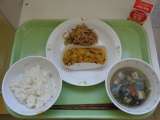 【献立】 麦ごはん 牛乳 けんちん汁 ひじきの卵焼き 豚肉と切干大根の炒め物 ...