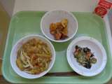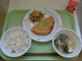 【献立】 カレーあんかけうどん 牛乳 わかめサラダ じゃこ入り大学芋 【一...