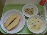 【献立】 ガーリックトースト 牛乳 秋野菜のクリームシチュー ビーンズサラダ ...