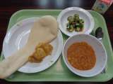 【献立】 ナン 牛乳 キーマカレー タンドリーチキン カチュンバル(インド風サラ...