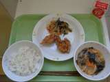 【献立】 麦ごはん 牛乳 切干大根のみそ汁 鶏のから揚げ 小松菜入り春雨サラダ ...
