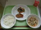 【献立】 きのこおこわ 牛乳 利休汁 ししゃもの磯辺揚げ 野菜のごまだれかけ ...