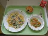【献立】 小松菜クリームスパゲッティ 牛乳 じゃこサラダ ブルーベリーマフィン ...