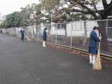 11月28日(月)、早朝からボランティア部が中心で落ち葉掃きを行っています。秋か...