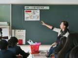 明日の大蔵大根収穫を前に、長尾栄養教諭と支援員の石坂さんとで、大根収穫についての...