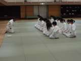 現在、1年生女子の体育は、格技室で柔道を行っています。ビデオで自分の動きを確認し...