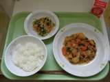 【献立】 青菜のごはん 牛乳 豚肉と大根のうま煮 大豆と小魚の甘辛揚げ 【...