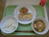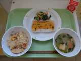 【献立】 吹き寄せごはん 牛乳 生揚げのみそ汁 千草焼き 小松菜のあえもの ...