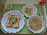 【献立】 ツナトースト 牛乳 白いんげん豆のスープ チーズ入りフレンチサラダ カ...