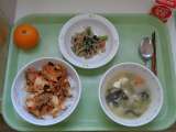【献立】 豚キムチ丼 牛乳 わかめスープ 塩ナムル みかん