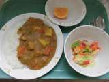 今日の給食は、チキンカレーライス、牛乳、カラフルハニーサラダ、いよかんです。 ...
