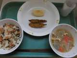 今日の給食は、磯おこわ、牛乳、わかさぎの二色フライ、呉汁、りんごです。 今日...