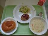 【献立】 ミルクパン 牛乳 コーンクリームスープ アップルチーズハンバーグ ビー...