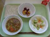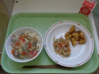 【献立】 ソフトめんのカレーあんかけ 牛乳 野菜の甘酢かけ 大学いも 1月...