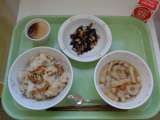 【献立】けんちんうどん牛乳かみかみ和えじゃこ入り大学芋【今日の給食室】じゃこ入り...