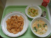 【献立】キムチチャーハン牛乳中華風コーンスープパリパリサラダ【今日の給食室】パリ...