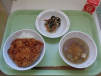 【献立】ソースカツ丼牛乳ざくざく磯辺和え今日は福島県の郷土料理の献立です!ソース...