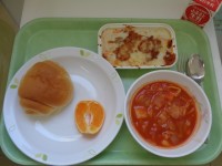 【献立】マーガリンパン牛乳ミネストローネラザニアはるみ今日はイタリア料理の献立で...