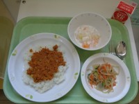 【献立】ドライカレー牛乳こんにゃくサラダフルーツヨーグルト【今日の給食室】ドライ...