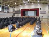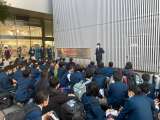 体育館を覗いてみると、3年生が最後の学年集会を開いていました。所属の先生たち一...