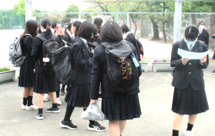 午前8時00分、昇降口では新クラス発表に大きな歓声があがりました。その後の着任...