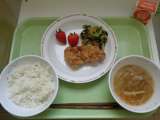 【献立】 麦ごはん 牛乳 沢煮椀 鶏のから揚げ 小松菜のあえもの いちご ...