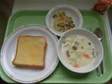 【献立】 ハニートースト 牛乳 キャベツのクリームシチュー ビーンズサラダ ...