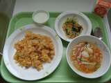 【献立】 キムチチャーハン 牛乳 春雨スープ ナムル 杏仁ゼリー 【食材産...