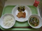 【献立】 味噌つけ麺 牛乳 ちくわの磯辺揚げ もやしとわかめのごま醤油 【...