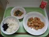【献立】 ごはん 牛乳 麻婆豆腐 かみかみ和え 【一口メモ】 麻婆豆腐は中...