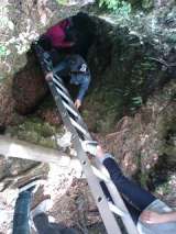 井戸型溶岩樹型に実際に入ってみます。中の気温は5度です。