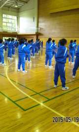 二日目です みんな時間通りに起床し、体育館で朝礼 ラジオ体操をしています
