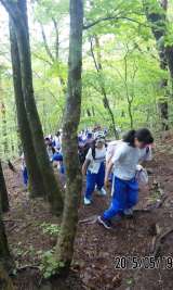 登山は山道に入り 約半分あたりです さすがにみんな疲れてきましたが がんばって...
