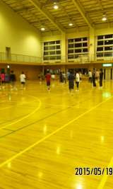 体育館でのレクで ドッヂボールをしています 登山の疲れも見せず 元気に楽しんで...