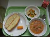 【献立】 ガーリックトースト 牛乳 豆入りポークシチュー コーンサラダ セミノー...