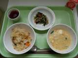【献立】 中華おこわ 牛乳 中華風コーンスープ しゃきしゃきわかめナムル ぶどう...