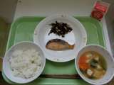 【献立】 麦ごはん 牛乳 吉野汁 鮭の香味焼き ひじきと大豆の炒め煮 【食...