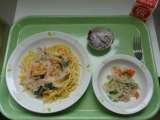 【献立】 小松菜クリームスパゲッティ 牛乳 ツナサラダ ココアケーキ 【食...