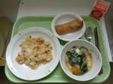 【献立】 五目チャーハン 牛乳 わかめスープ 小松菜と豚キムチの春巻き 【...