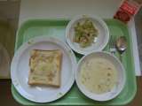 【献立】 ツナトースト 牛乳 クラムチャウダー ビーンズサラダ 【食材産地...