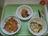 【献立】 カレーあんかけうどん 牛乳 わかめサラダ 大学芋 【食材産地】 ...