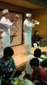 今日の活動も無事終了し、これから料理長さんのお話を伺いながら懐石料理です。ステキ...
