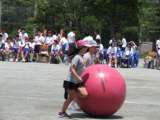 小学生1年生から6年生まで、96名が参加しました。紅白の大玉ころがしです。
