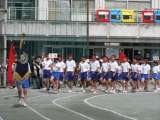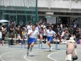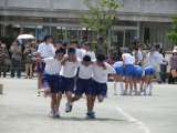 3学年種目は大百足競争。先ず、女子がトラックを1周し、その後、男子にたすきをわた...