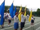 雨天が心配されます。プログラムを変更して団体種目を優先。 まずは、学年ごとの大縄...