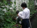 校舎南側に設置している「グリーンカーテン」。今年は天候がよいためか、たくさんのき...