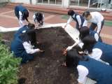 ボランティア部の3年生が、中庭の手入れをしてくれました。 球根や雑草をとり、...