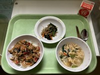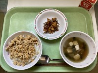【献立】高野豆腐のそぼろ丼牛乳けんちん汁大豆と小魚の甘辛揚げ【今日の給食室】大豆...