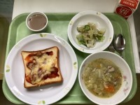 【献立】ピザトースト牛乳ABCマカロニスープビーンズサラダカフェオレゼリー【今日...